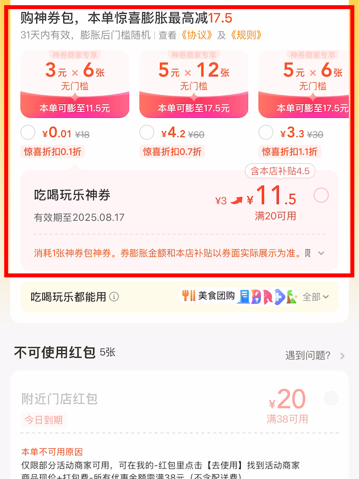 只有美团官方的付费券包,但是这玩意儿是要花钱买的,我都点外卖了,你跟我说,要多花钱买优惠,正经人谁干这事儿啊?所以,现在给大家说一下别人的外卖为什么这么便宜?咱们现在退出美团,下拉微信。